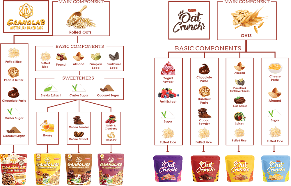 The most renowned characteristic of our products which is quite memorable within our customers is the light and airy crunchiness of our produce ! you can have GRANOLAB for breakfast as you usually prepare your cereal or just snacking it off directly! or maybe, you prefer having OAT CRUNCH for your snacking chums while watching your favorite movies is also a cool idea! Enjoy them on your own comfort!